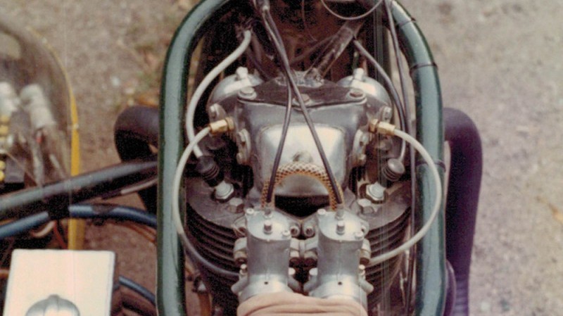 The winter was spent doing two things. First I entered an evening class learning how to weld and solder using an acetylene/oxygen torch, so that I would be able to undertake frame modifications on my own. Secondly I set out to increase the power output of the Commando engine. I had consumed tons of literature about how the big guns went about this and I was going to follow them. The most complex operation was to change the inclination angle of the inlet valves. I needed to go from 32 millimetre valves to 36 ( I believe it was ) and the only way this could be done was to move the valve centreline 2 millimetres away from the exhaust valve and so give me a total of 4 mm increase. The angle change was only 1,2 degrees ( again if I remember right) and since the valves were not in parallel with neither each other nor the cylinder bores but rather in a radial arrangement, this was going to be a tricky operation. My father, luckily, worked at a precision machining shop owned by the husband of one of my father’s sisters, and as he was an old motorcycle racing pioneer he regarded me as his second son and would lend me his machines on a Saturday or Sunday. He had a Jig Bore machine placed in a temperature controlled room and this is where the surgery took place on the Commando cylinder head one wintry Saturday afternoon. The Jig Bore machine operator had volunteered as surgeon and I was an impressed spectator. The next job was to make up and install new, oversized, inlet valve guides and then cut new pockets for the equally new and oversized valve seats which I think were made out of bronze. Then the inlet ports were opened up from the standard 28 to 32 millimetres. A tedious job involving rotating files and hours of hand work to get the ports roughly in the shape I wanted.